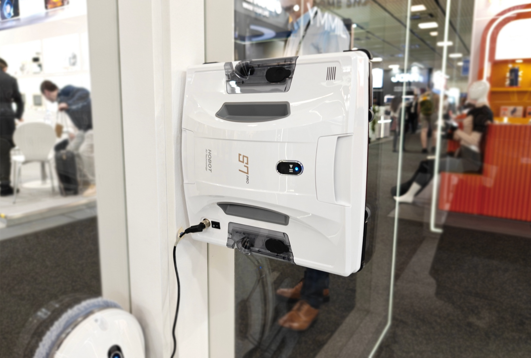 Центральное место на стенде занял Hobot-S7 Pro — наиболее технологически продвинутая модель робота-мойщика квадратной формы на сегодняшний день.